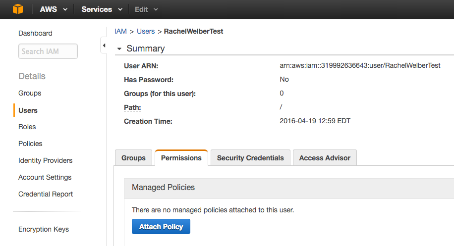 ステップ3:ポリシーをアタッチする