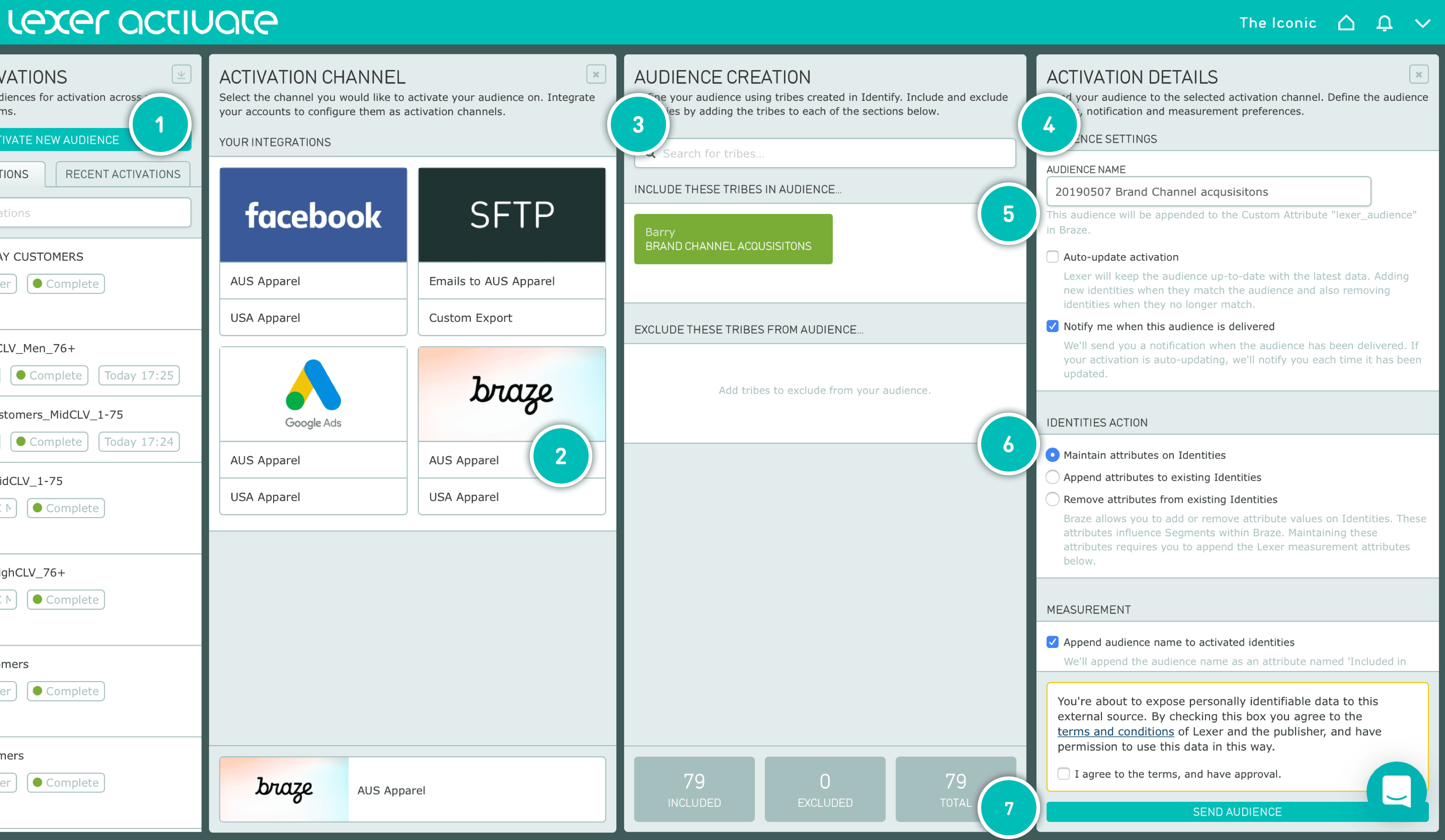 - Lexer の [Lexer Activations] で [ACTIVATE NEW AUDIENCE] をクリックします。