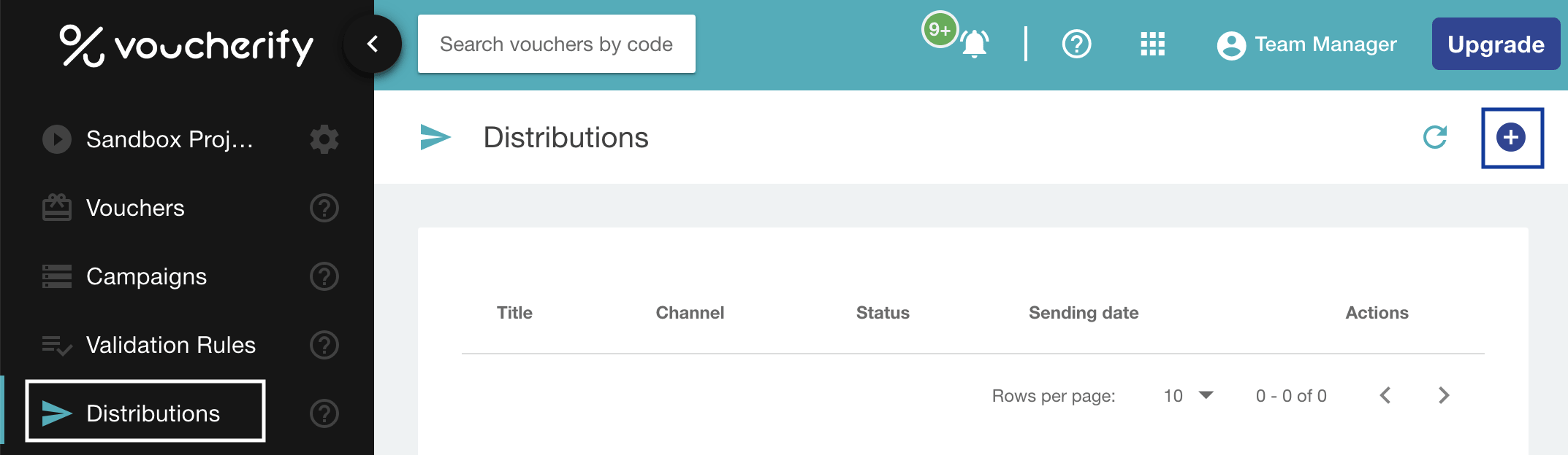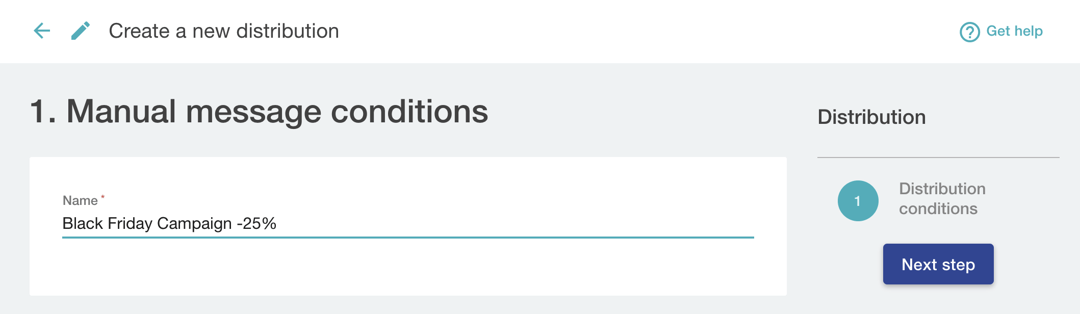 マニュアルモードは、選択されたオーディエンスにコードを割り当てる一度限りのアクションです。ダッシュボードの [Distribution] に移動し、プラス記号を使ってディストリビューションマネージャーを実行し、[Manual Message] を選択します。
