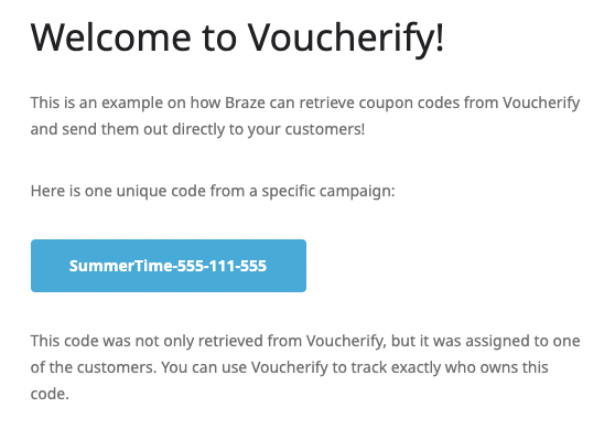 これにより、Voucherify 応答からデータを取得して Braze メッセージに表示できます。