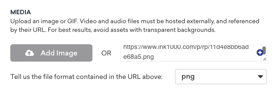 - Braze プラットフォームで、リッチ通知メディアフィールドにURLを貼り付けます。